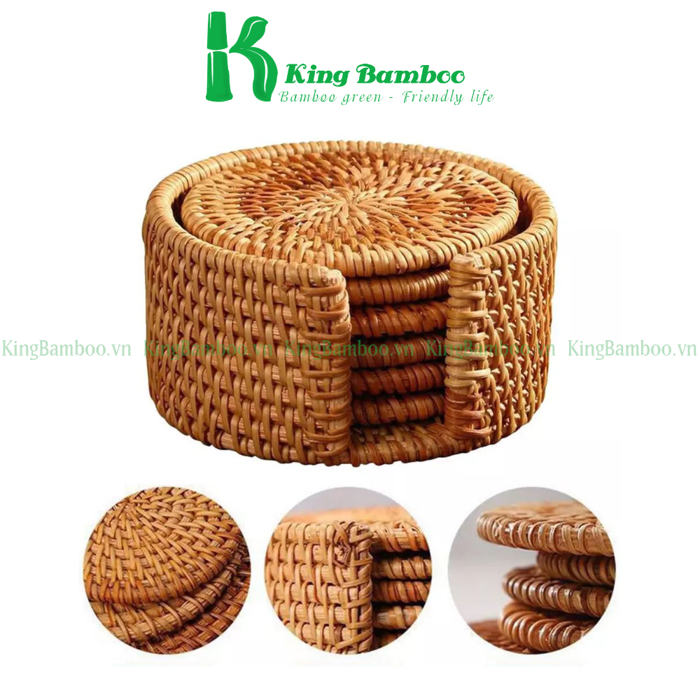 Bộ lót ly lót cốc, decor mây tre đan KING BAMBOO
