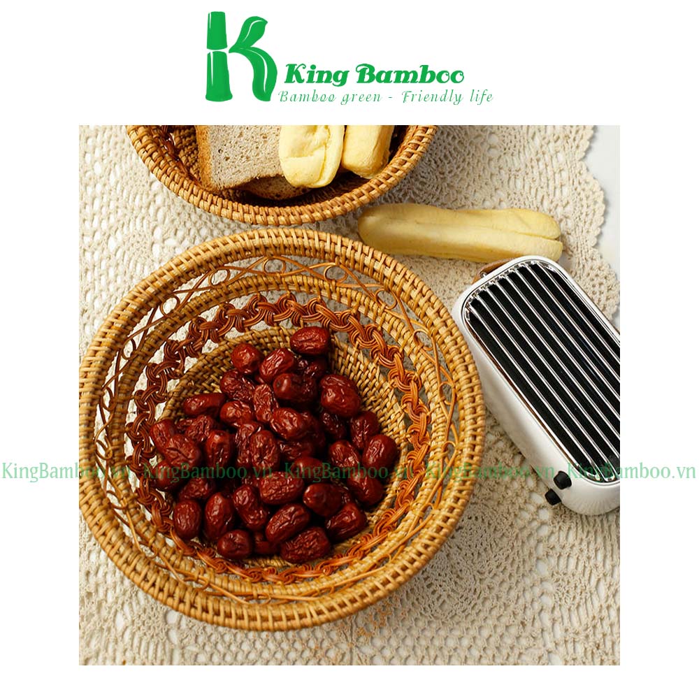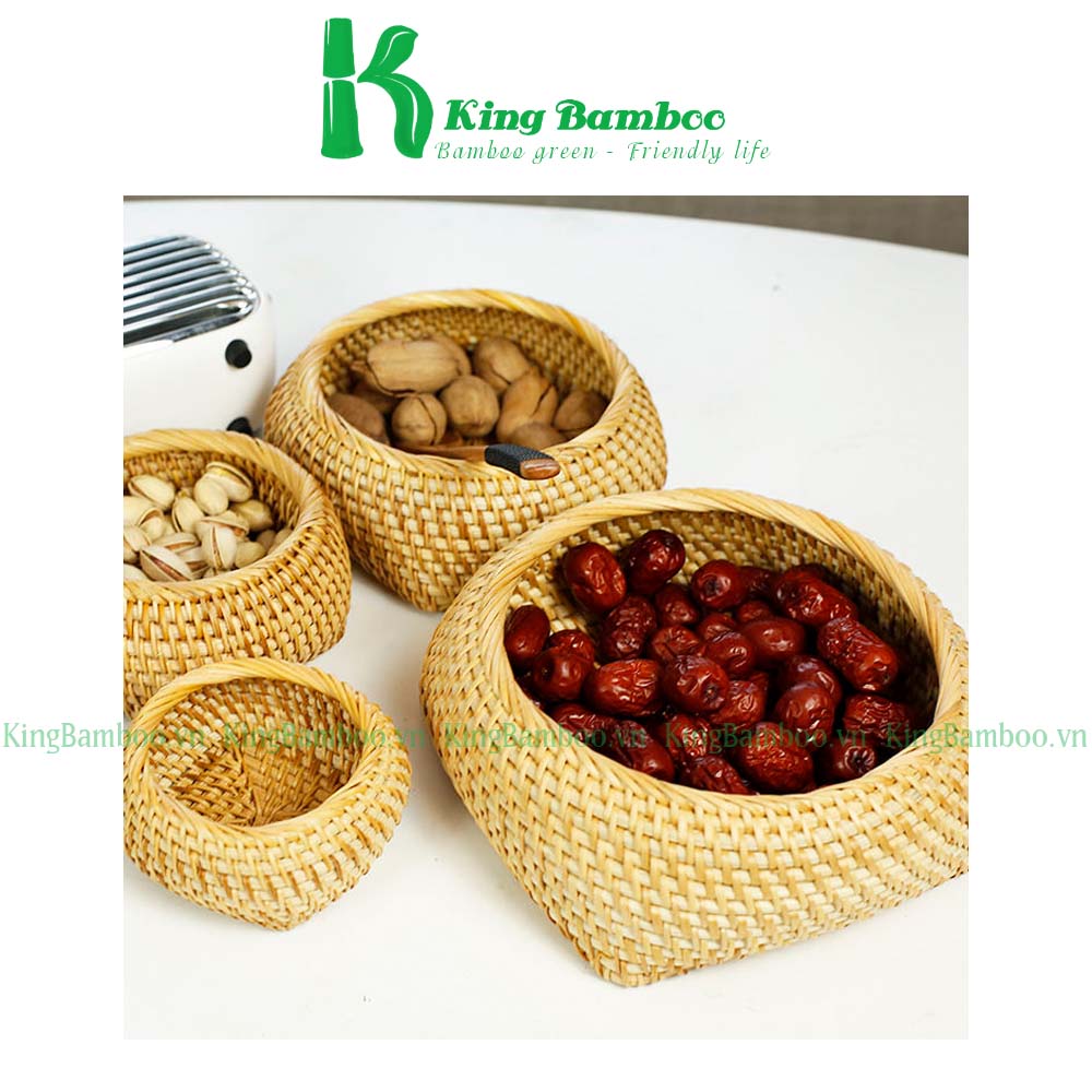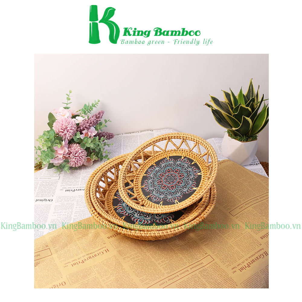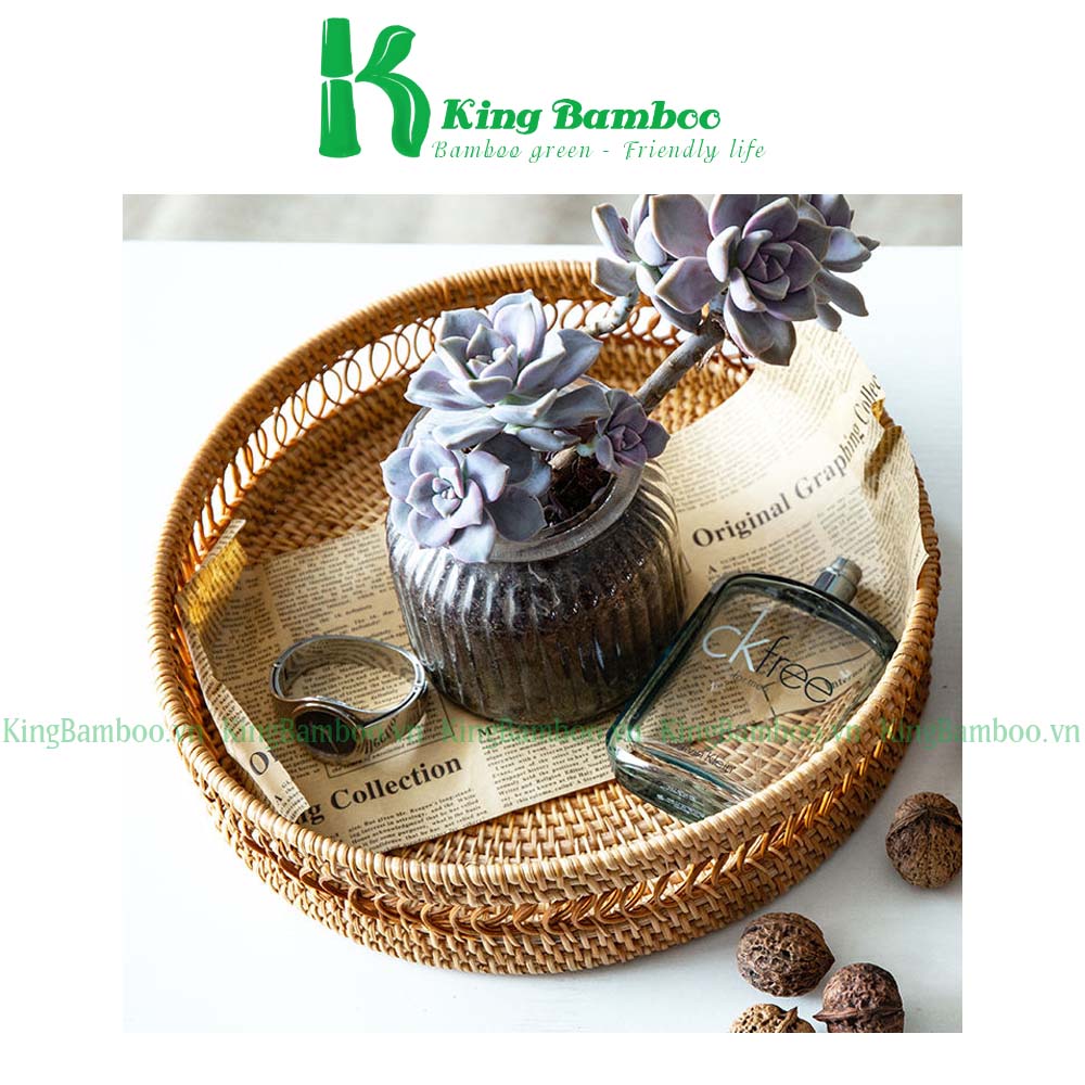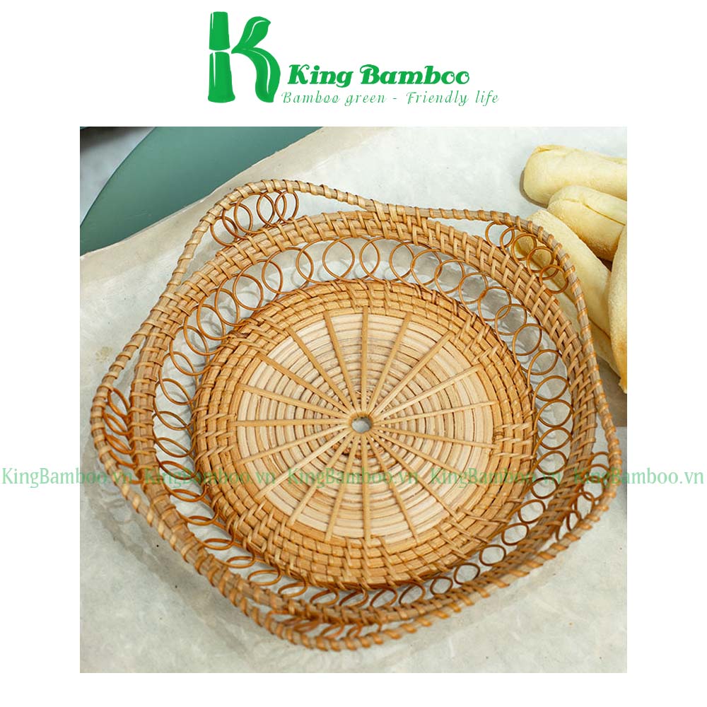 Khay mây đựng hoa quả, đồ ăn, trang trí mây tre đan KING BAMBOO