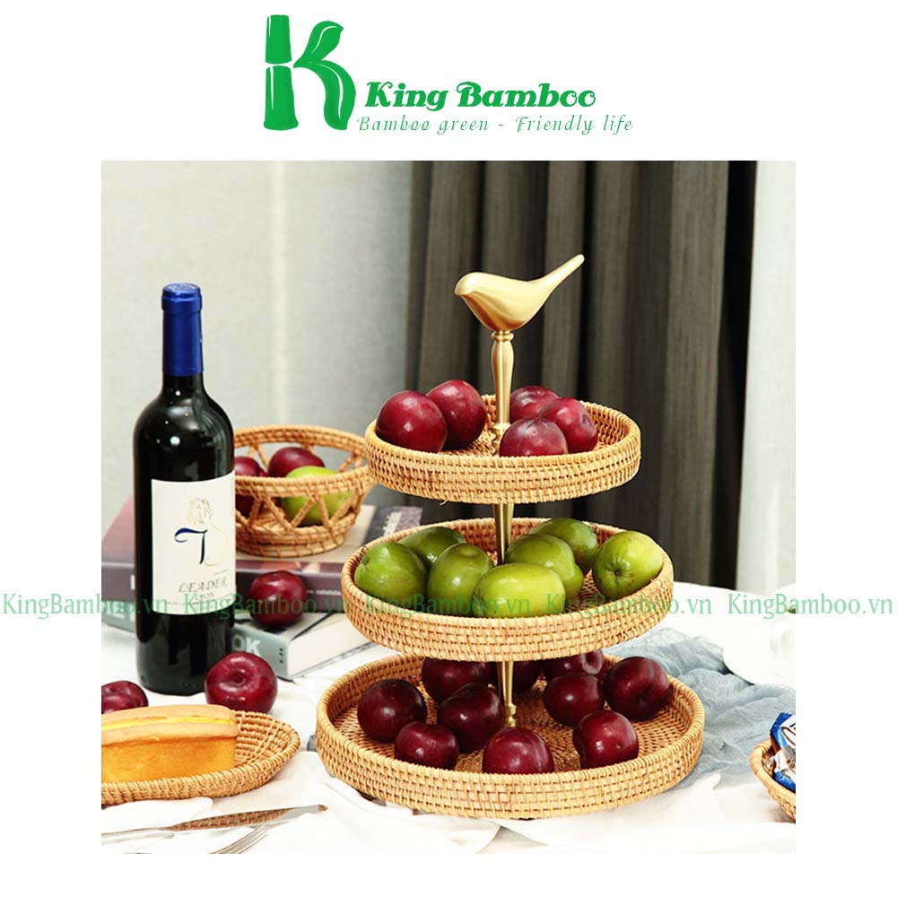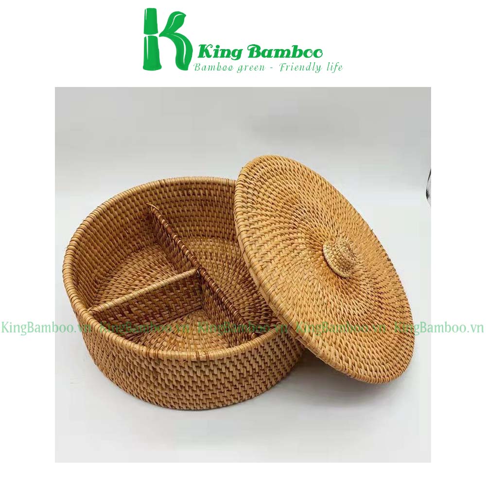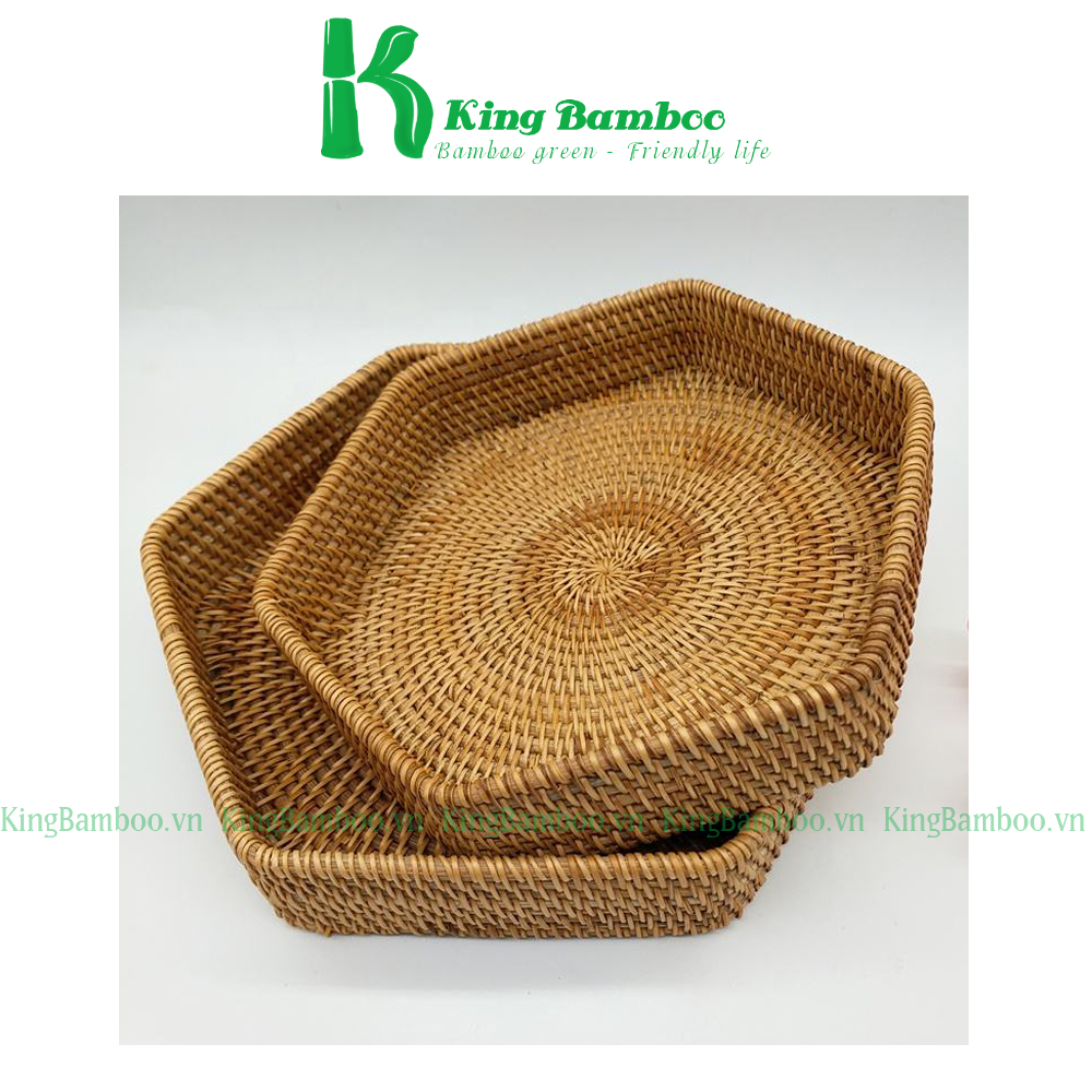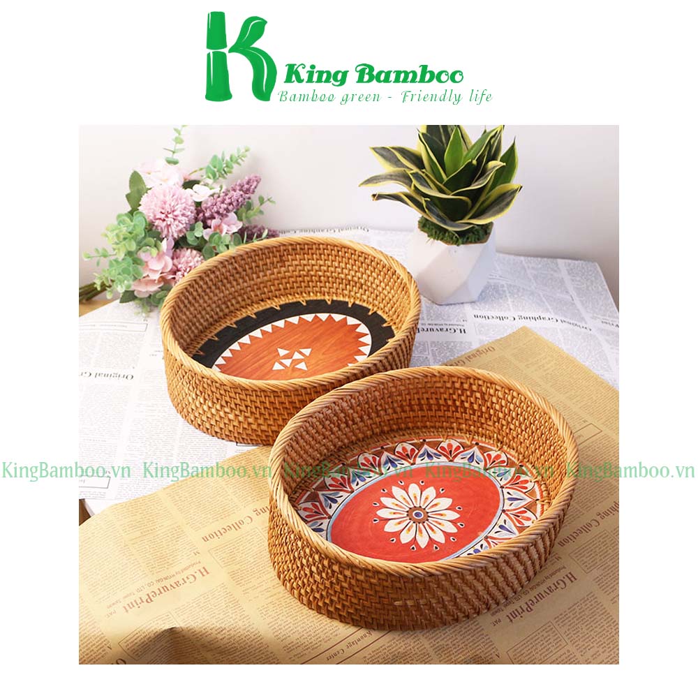 Khay mây đựng hoa quả, đồ ăn, trang trí mây tre đan KING BAMBOO