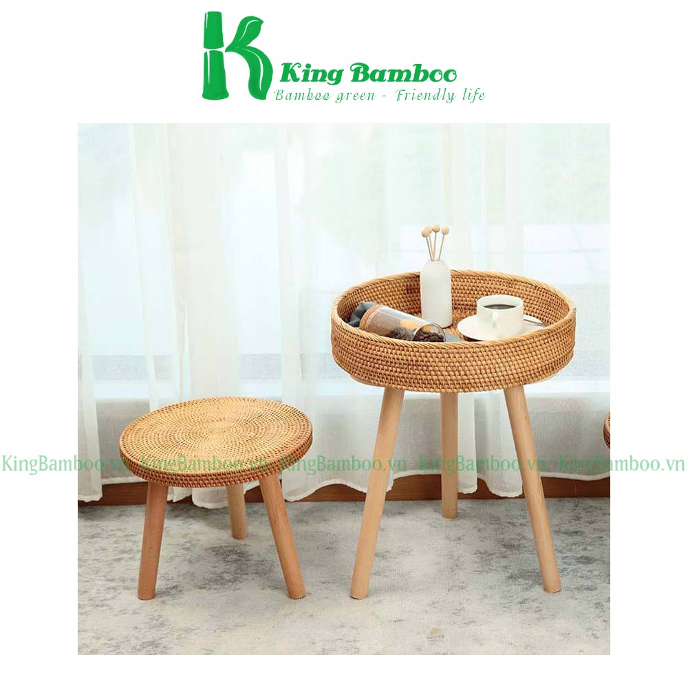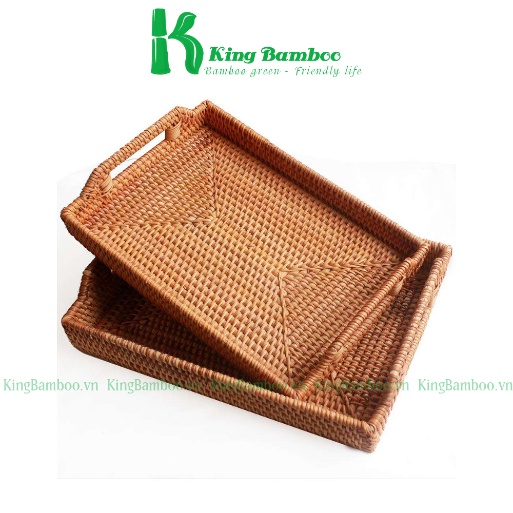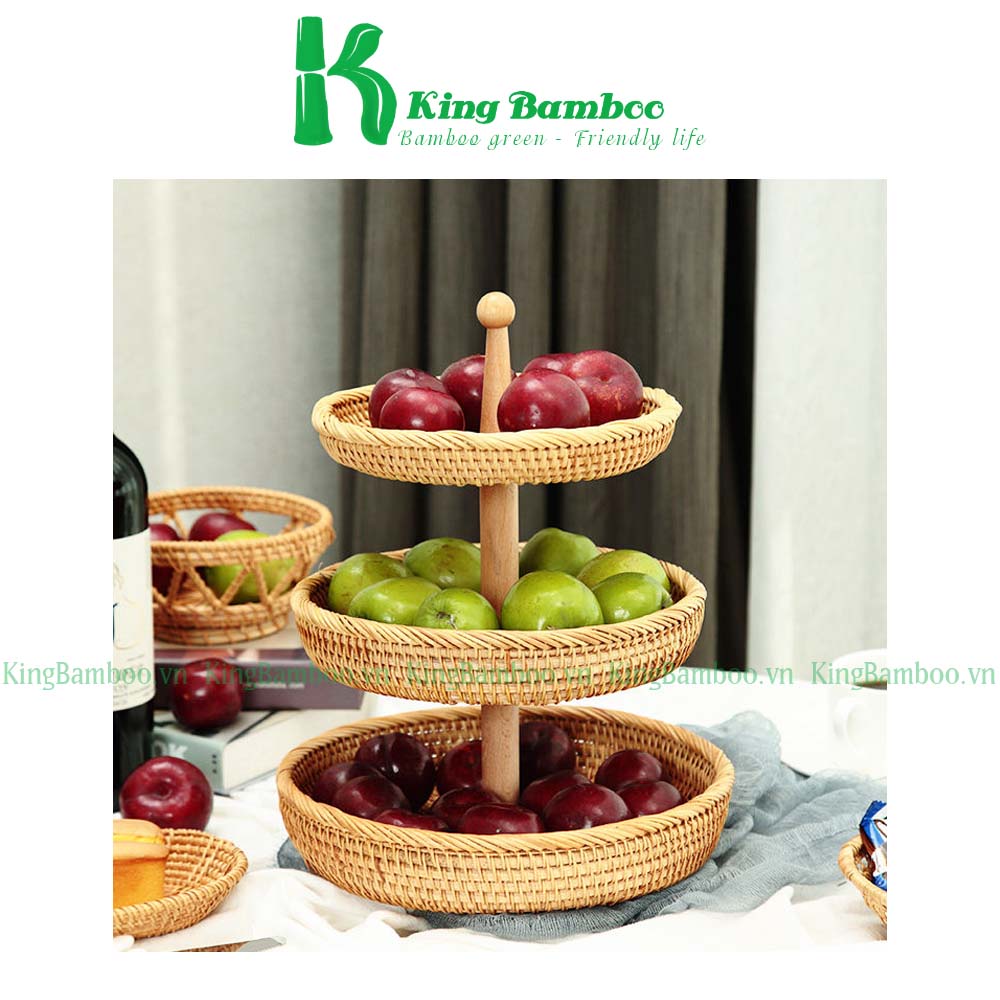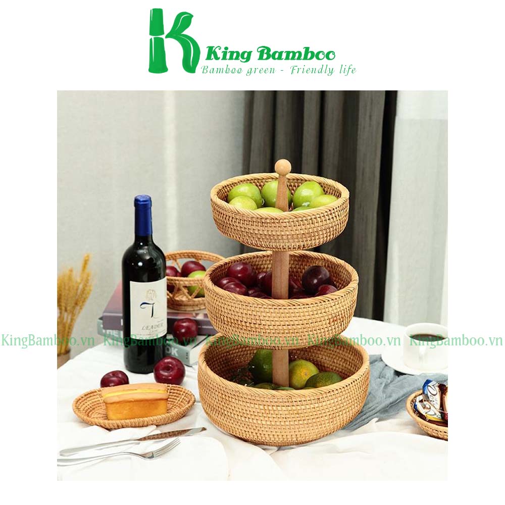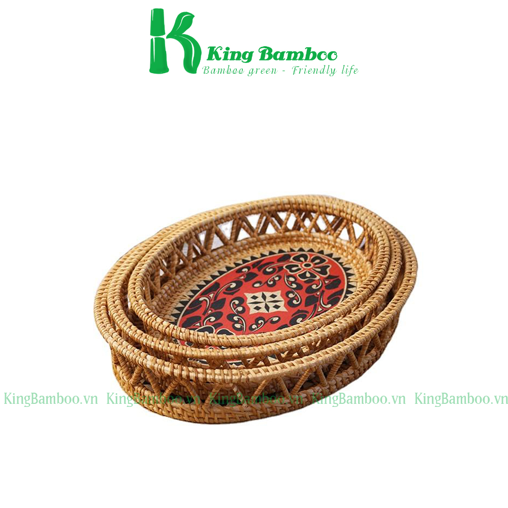 Khay mây đựng hoa quả, đồ ăn, trang trí mây tre đan KING BAMBOO