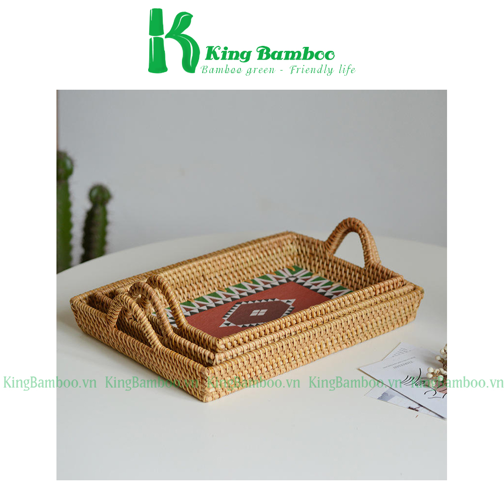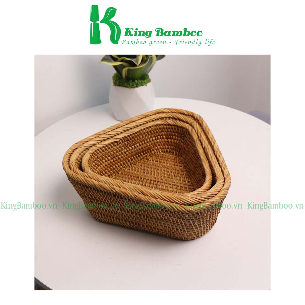 Khay mây đựng đồ 3 món, decor mây tre đan KING BAMBOO
