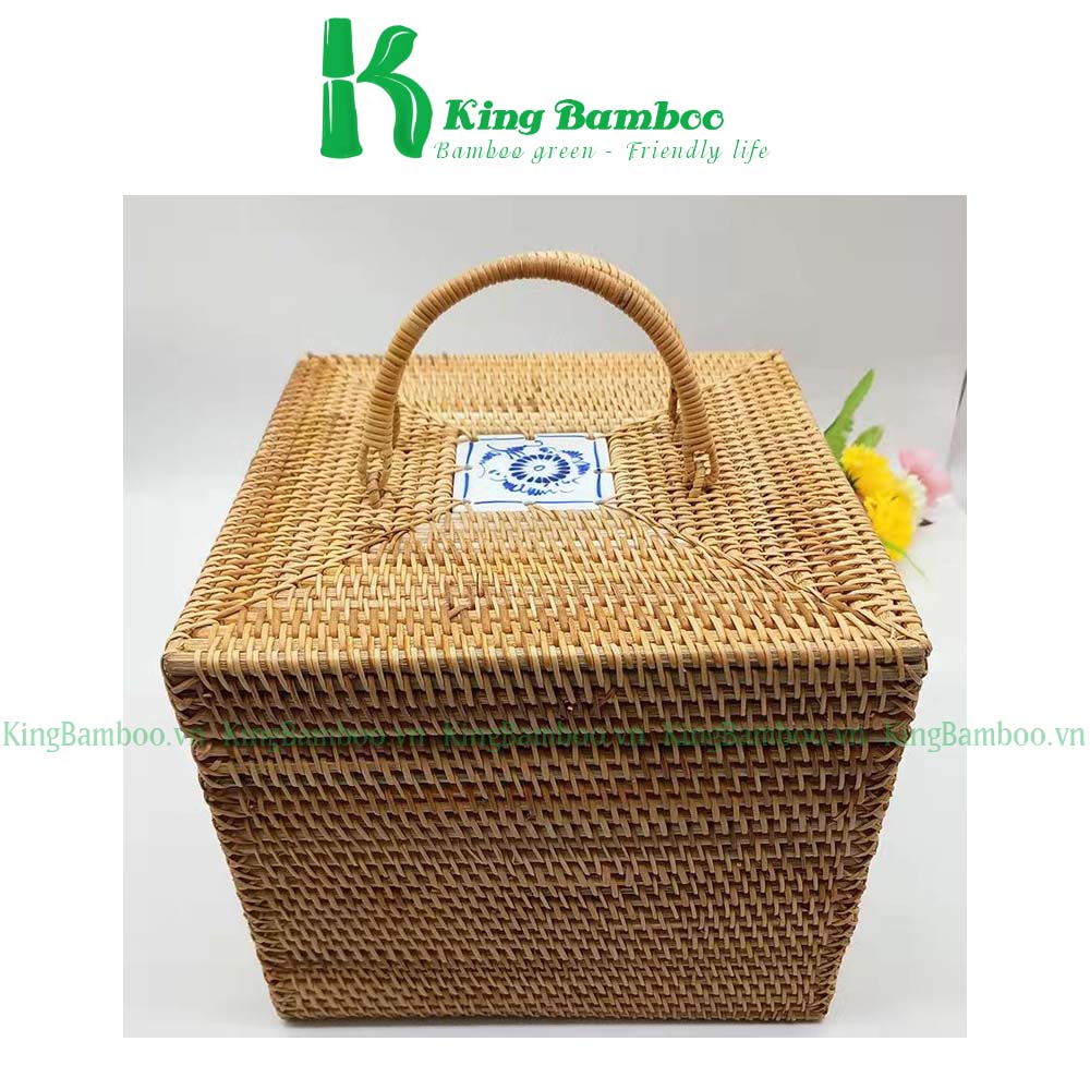Hộp chữ nhật sứ đựng kẹo decor bếp, bàn ăn bằng mây tre đan KING BAMBOO