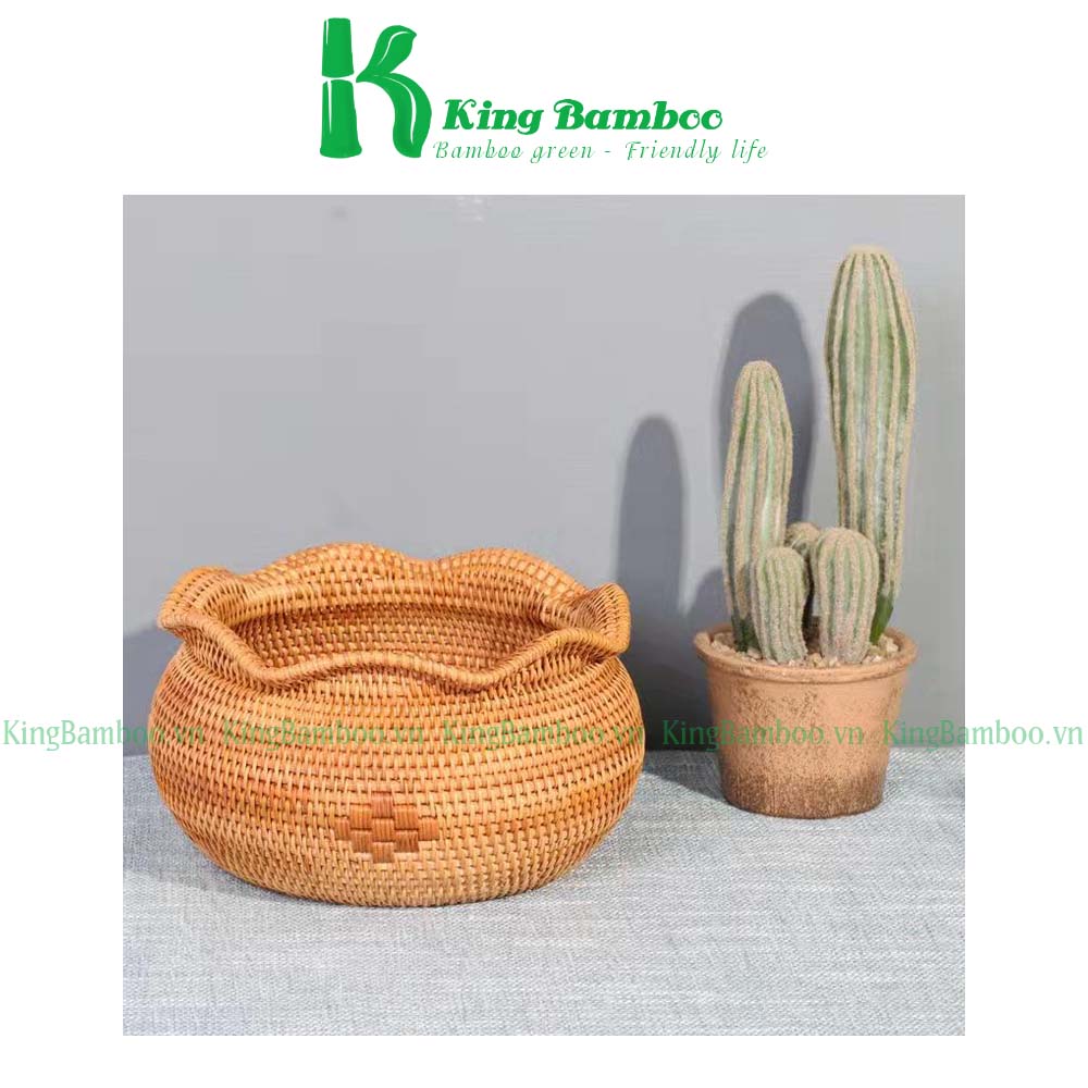 Bát mây tròn viền sóng đựng đồ, trái cây, decor mây tre đan KINGBAMBOO