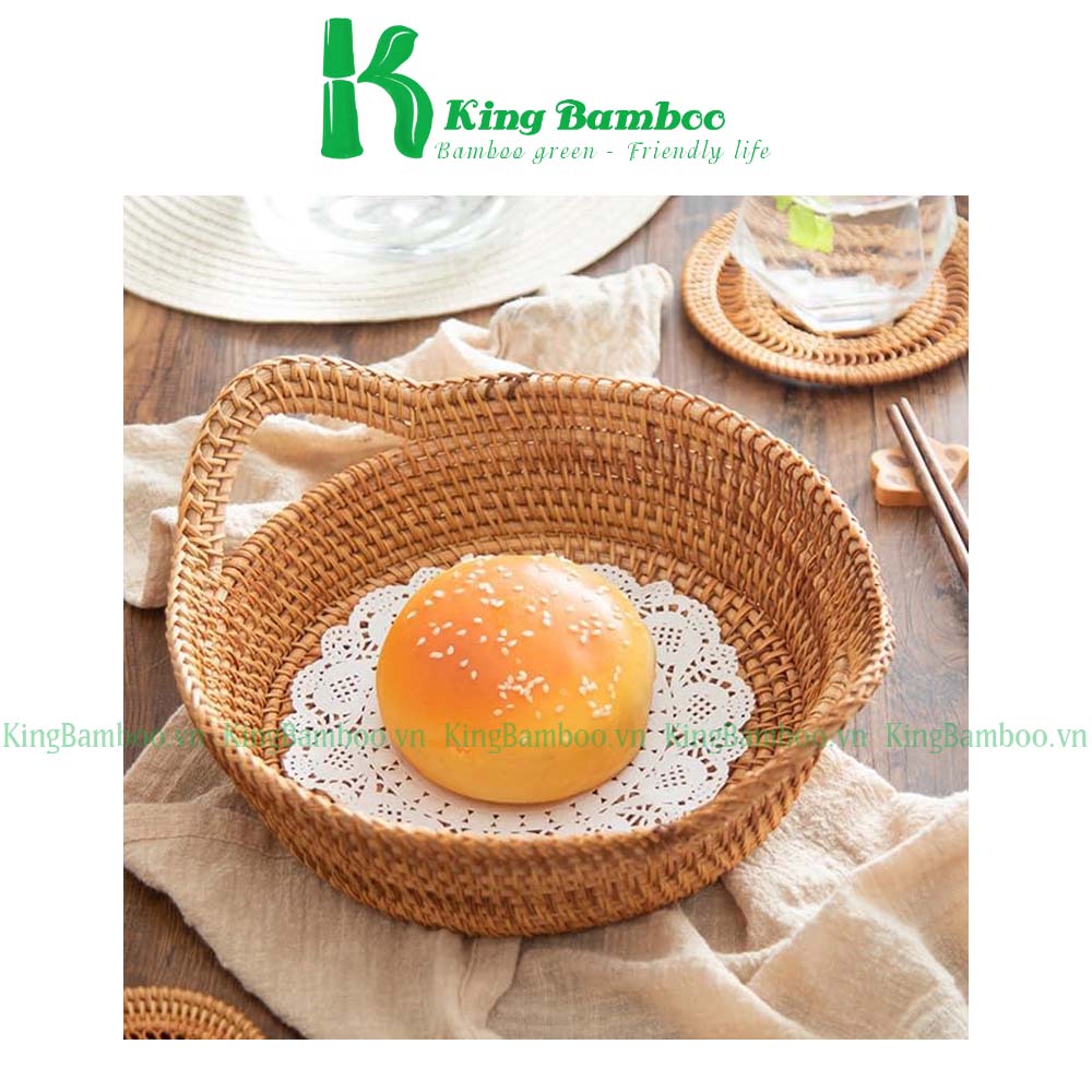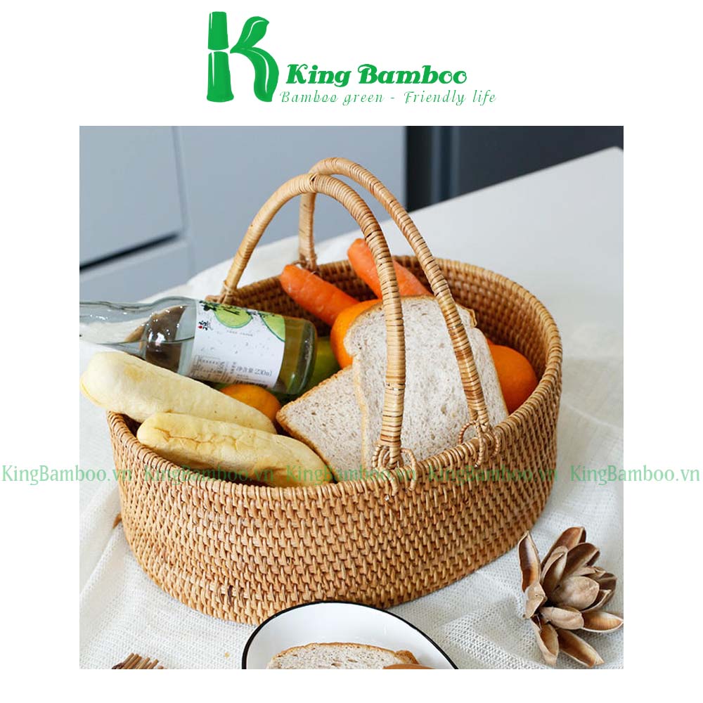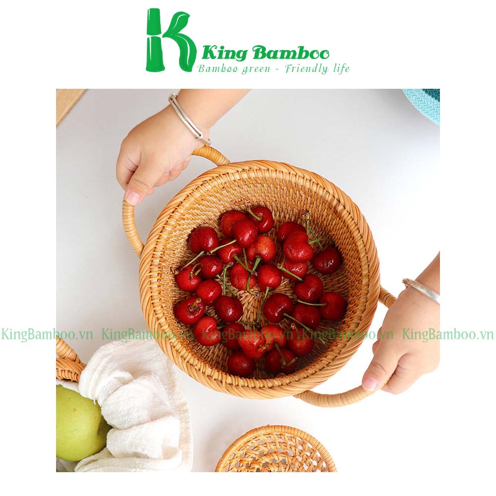 Khay mây tròn có tay cầm, đựng đồ ăn, trang trí mây tre đan KING BAMBOO