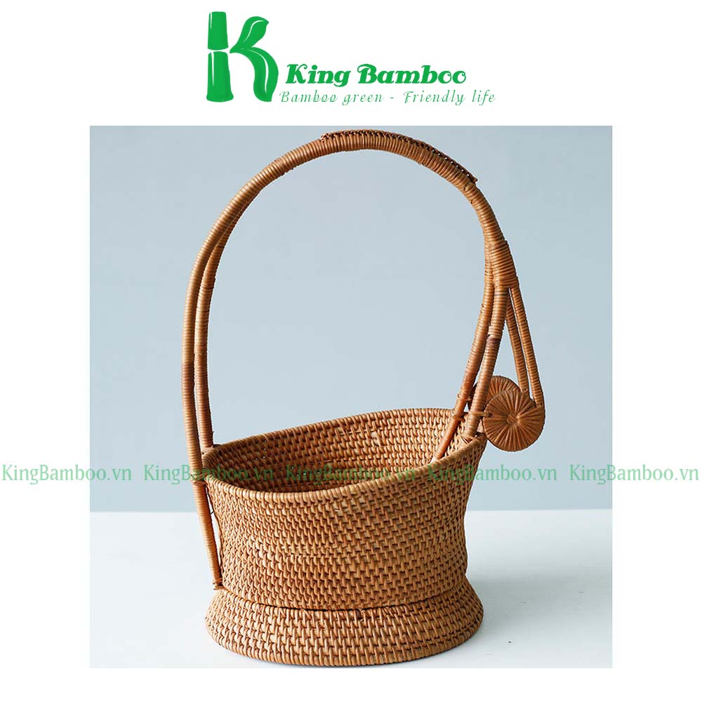 Bát đựng hoa quả, trang trí có quai xách decor mây tre đan KING BAMBOO