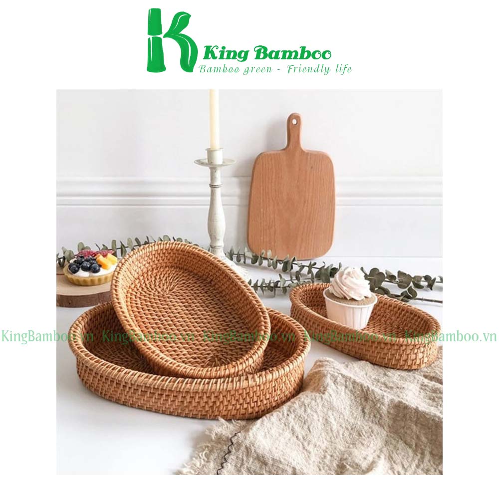 Đĩa mây bầu dục đựng đồ ăn bánh kẹo, đĩa mây tre đan KING BAMBOO