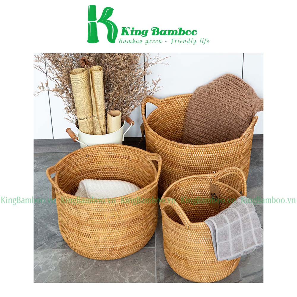 Giỏ mây đựng đũa dĩa, bút, trang trí mây tre đan KING BAMBOO