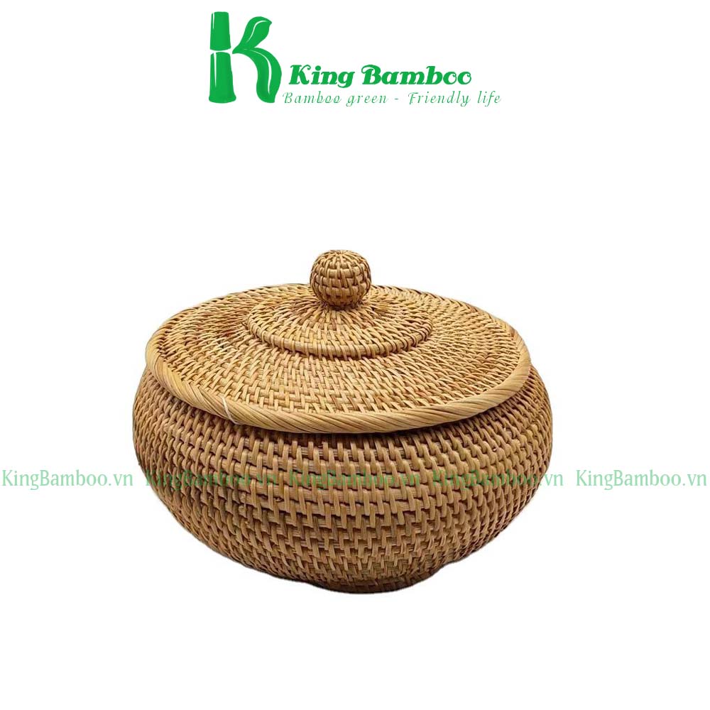 Hộp đựng có nắp hoa văn trang trí mây tre đan KING BAMBOO