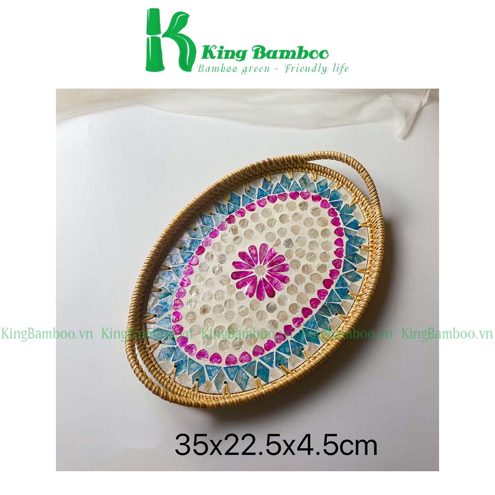 Khay mây khảm trai bày bầu dục,đựng hoa quả đồ ăn, mây tre đan KING BAMBOO